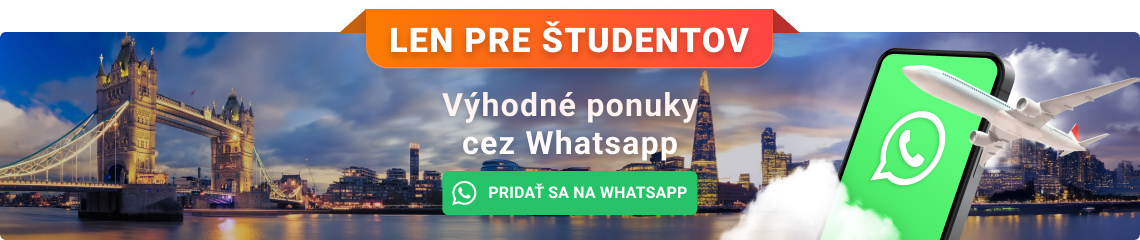 Študentské tarify sú špeciálne tarify od leteckých prepravcov, ktoré platia len pre študentov schopných preukázať sa študentským preukazom. Pre informácie ohľadom študentských taríf nás kontaktujte na našom WhatsAppe, na ktorom vám naši kolegovia poskytnú informácie o možnostiach.